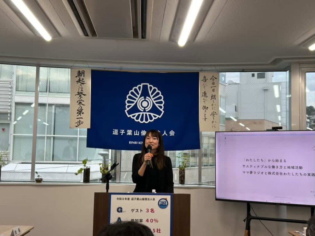 当日は「『わたしたち』から始まるサスティナブルな働き方と地域活動 ~ママ夢ラジオと株式会社わたしたちの実践~」と題し、看護師としてのキャリアや育児経験を経て、どのように地域コミュニティとビジネスを繋いできたか。また、弊社が大切にしている「子育て世代の当事者が、自らの体験を言葉にして発信していくこと」が、結果として地域の持続可能性(サスティナブル)に繋がるという循環についてもお伝えいたしました。